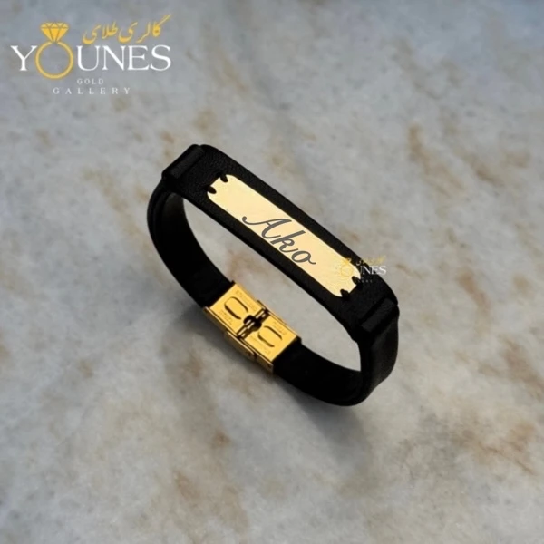 معرفی دستبند چرم مردانه طلا حکاکی اسم Ako آکو: