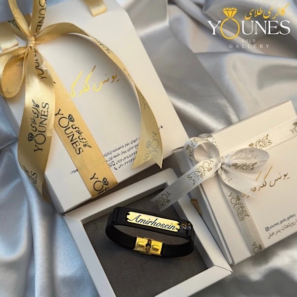 معرفی دستبند چرم مردانه طلا حکاکی اسم Amirhosein امیرحسین:
