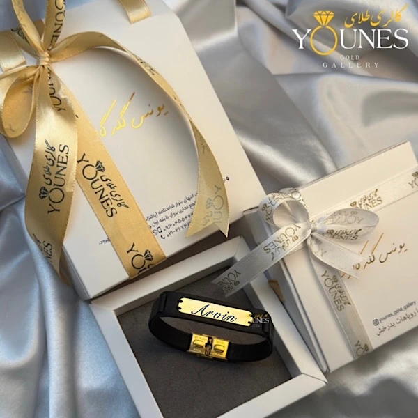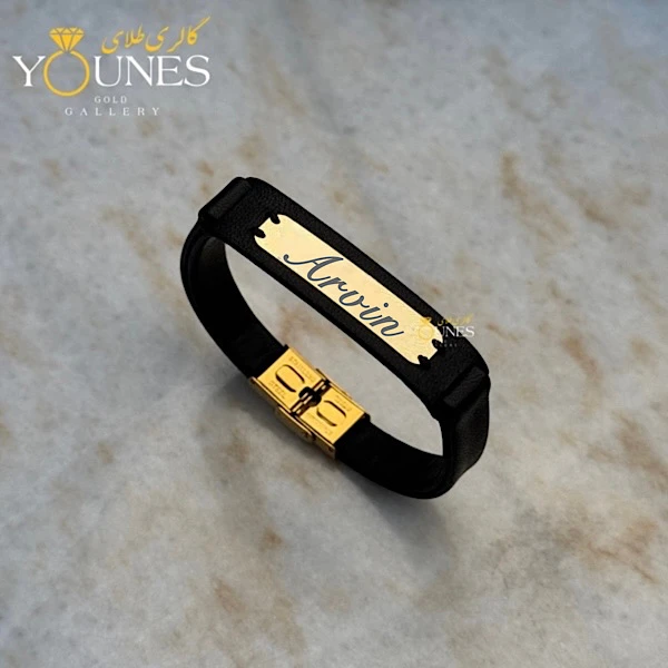 معرفی دستبند چرم مردانه طلا حکاکی اسم Arvin آروین:
